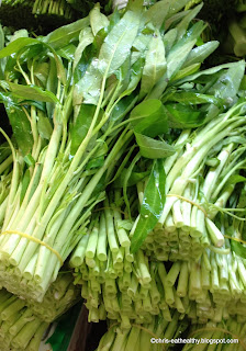 Water spinach, ong-choi 蕹菜 or tûng-choi (通菜lit. hollow-vegetable) in Cantonese, is plentiful these days at wet markets. With its long, slender, hollow stems and arrowhead-shaped leaves you cannot miss it Water spinach is different than Chinese spinach (amaranth) or yihn-choi 莧菜.